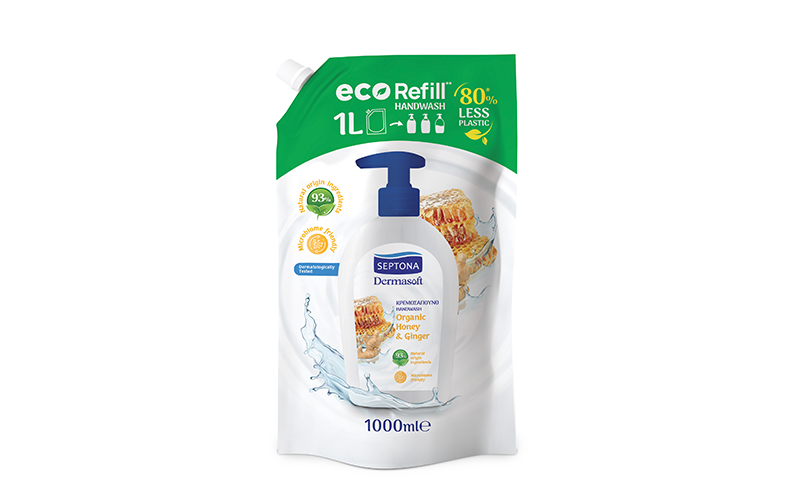 – Eco refill: γεμίζει 2,5 φορές ένα Κρεμοσάπουνο SEPTONA Dermasoft 400ml μπουκάλι με αντλία