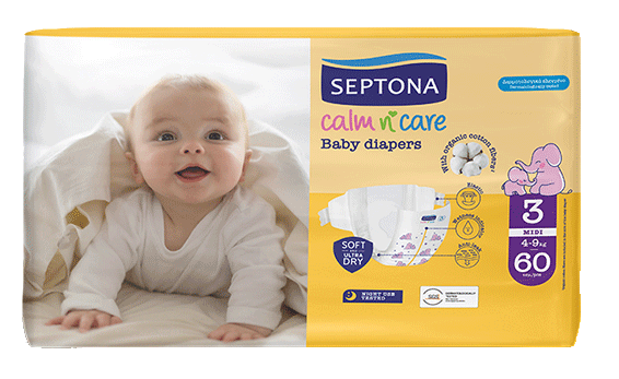 Οι βρεφικές пάνες SEPTONA calm n’ care προσφέρουν αποδεδειγμένη απαλότητα και απορροφητικότητα για την προστασία και φροντίδα του μωρού σας.