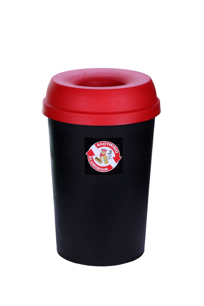 Κάδος Ανακύκλωσης Μαύρος με Κόκκινο Καπάκι και Τρύπα (για Αλουμίνιο) 50 Λίτρων
