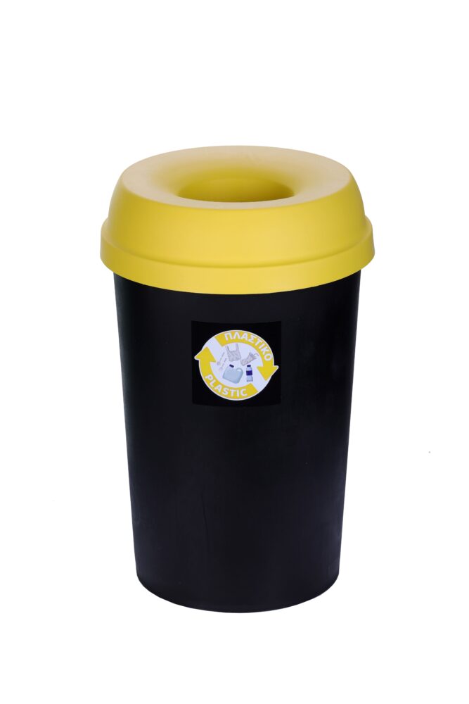 Χαρακτηριστικός Σχεδιασμός: Ο κάδος είναι μαύρος με έντονο κίτρινο καπάκι, προσφέροντας μια ευδιάκριτη και λειτουργική λύση για τη διαλογή του πλαστικού.