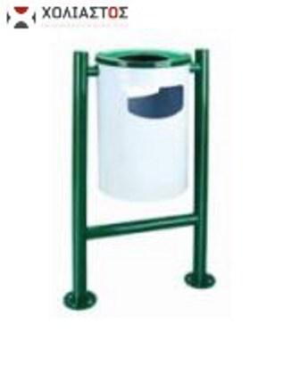 Κάδος απορριμμάτων με μεταλλική βάση.
