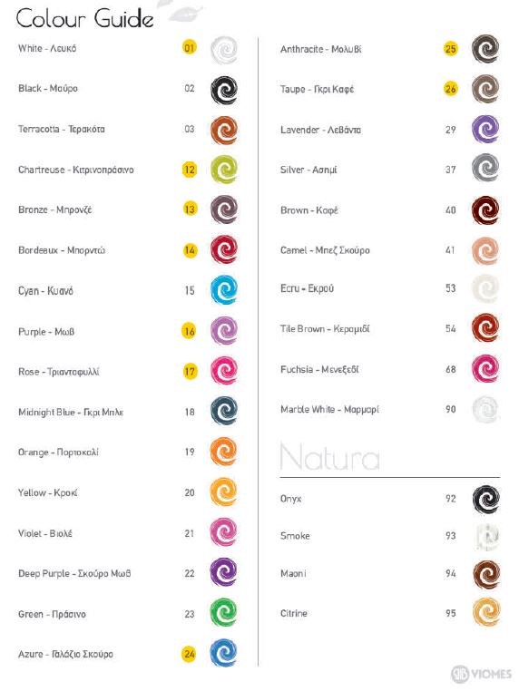 Τα διαθέσιμα χρώματα είναι τσεκαρισμένα με