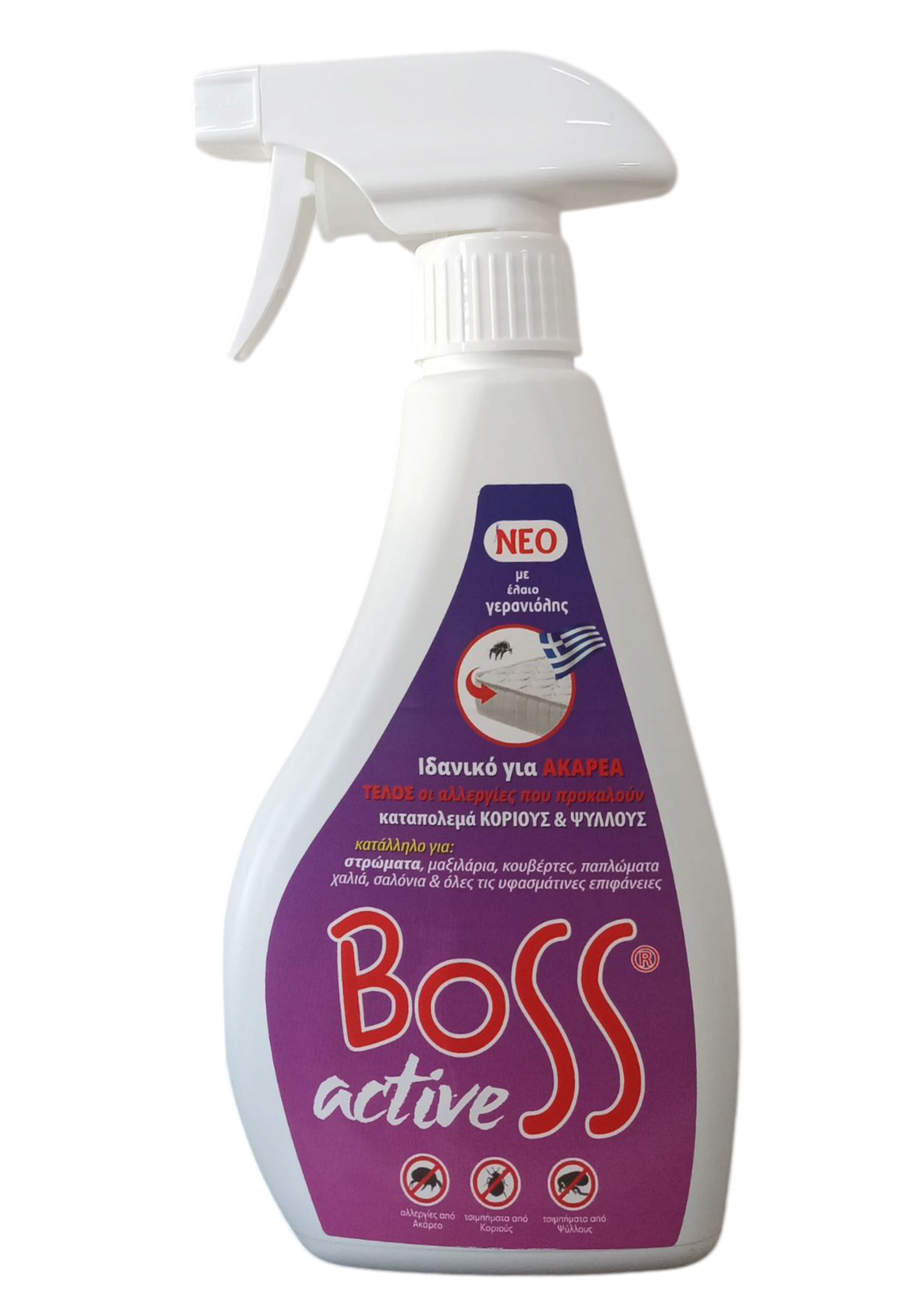 Το BOSS active είναι ένα προηγμένο εντομοκτόνο και ακαρεοκτόνο σπρέι, σχεδιασμένο για αποτελεσματική προστασία των υφασμάτινων επιφανειών.