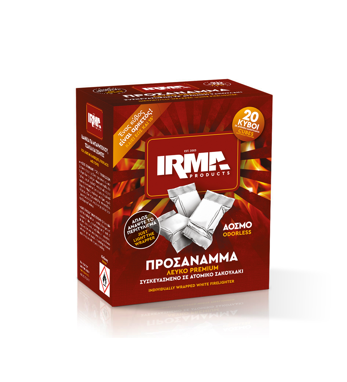 Προσάναμμα Irma Περιτυλιγμένο 20 Κύβων